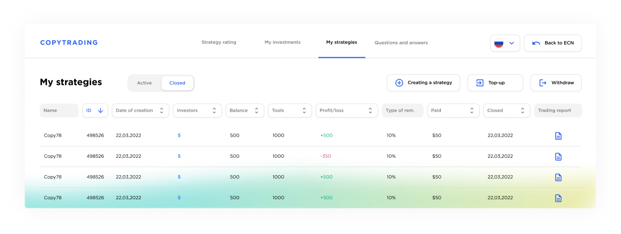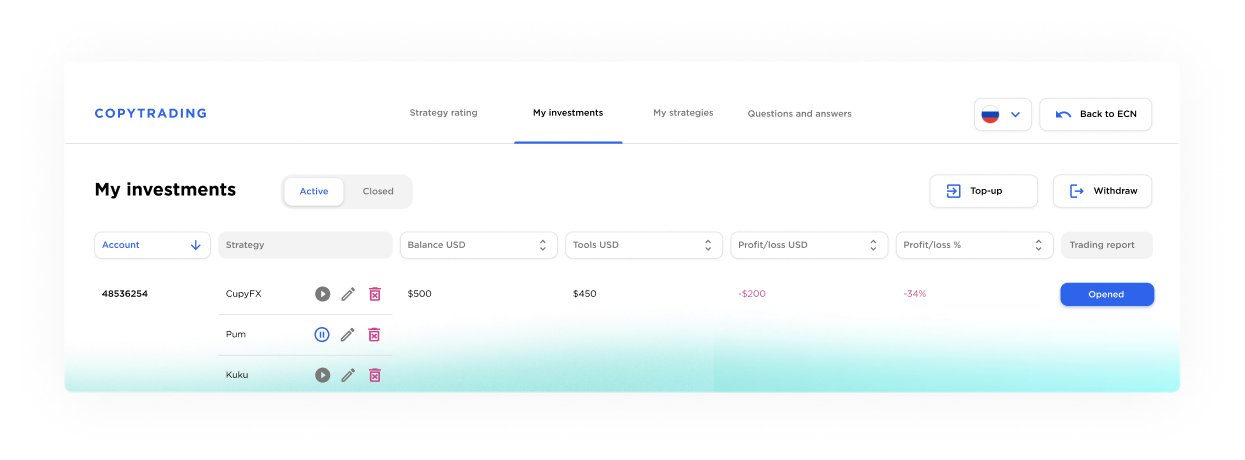 Na OnFin CopyTrading, é possível administrar estratégias e assiná-las em simultâneo. Mas para isso você precisa abrir contas diferentes.
