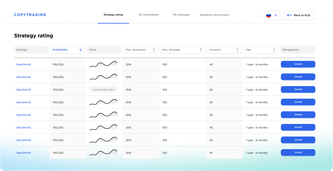 Disponibilizamos uma interação imediata e direta com provedores de liquidez em qualquer parte do mundo, e os traders decidem por conta própria ou adotam estratégias de sucesso comprovado. Essa é a verdadeira ECN - e uma corretora genuína.